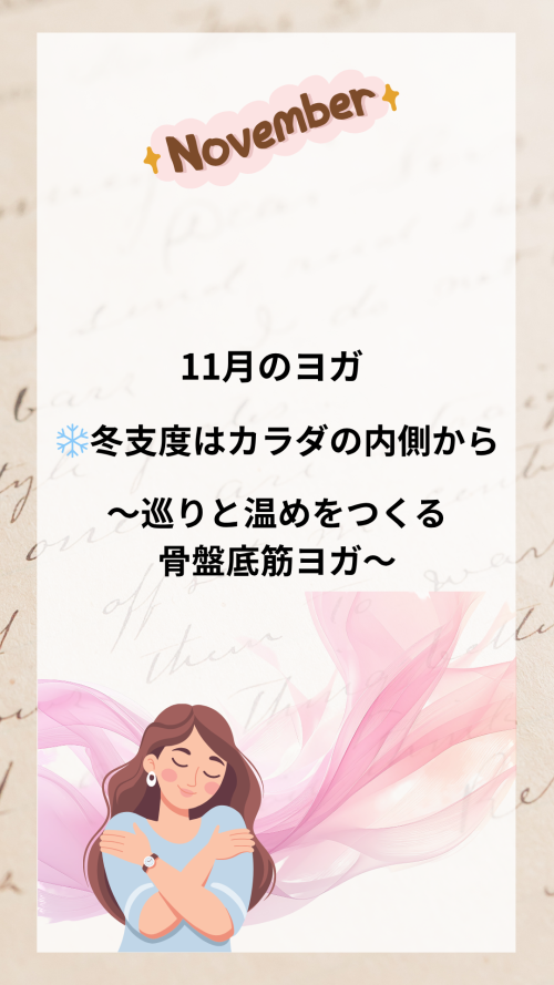 11月のヨガ 冬支度は身体の内側から〜巡りと温めをつくる骨盤底筋ヨガ